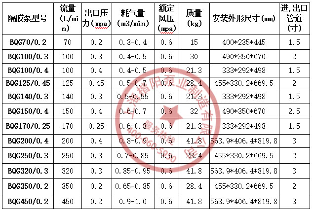 礦用氣動(dòng)隔膜泵BQG-150/0.4型號意義及參數(shù)