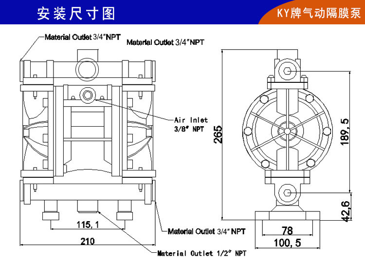 11)楷陽(yáng)氣動(dòng)泵可做多種材質(zhì)泵體,具有良好的抗腐蝕性,適用于各種介質(zhì)