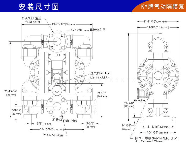 10)KY50LF大流量氣動隔膜泵可輸送較粘的液體(粘度在1萬厘泊以下);