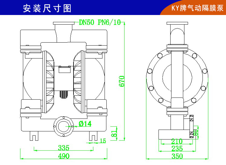 楷陽鋁合金氣動隔膜泵鑄件全部數控加工,主膜片采用特氟龍F46和進口特氟龍,副膜片使用山道橡膠和彈性橡膠,替代了常用的四氟和普通橡膠等劣質易損件;密封球和密封座采用特氟龍F4和山道橡膠;從而大大增加了氣動泵易損件的使用壽命。QBY-K50LL鋁合金氣動雙隔膜泵配氣裝置內置一體化,做到了真正的不卡氣、無死機,外觀更加美觀大方;空氣利用率大大提高,自吸功能和流量揚程都有很大改善。
