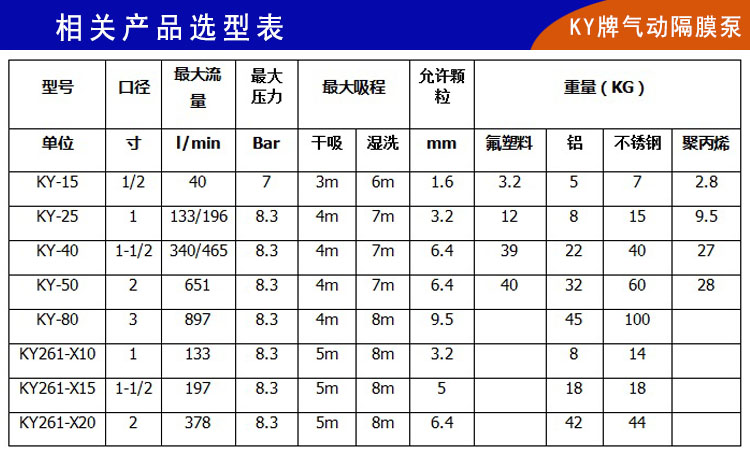 新一代微型隔膜泵配氣裝置內置,做到了真正的不卡氣、無死機,外觀更加美觀大方;空氣利用率大大提高,自吸功能和流量揚程都有很大改善。KY-10SZ鑄鐵氣動隔膜泵對于抽油類介質有獨特的耐腐優勢,氣動隔膜泵價格也相對便宜;只要有氣源,把氣管查到微型隔膜泵的進氣閥,它就可以工作,極大顯示了新一代微型隔膜泵的超強移動性能;