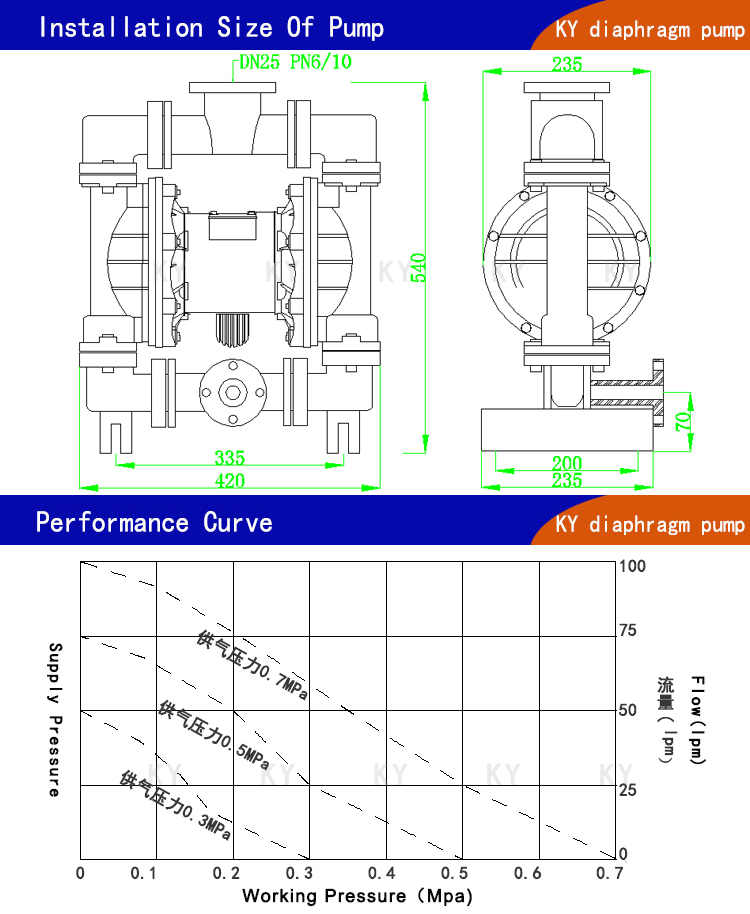 4)QBYK25LC氣動隔膜泵配氣裝置內置,做到了真正的不卡氣、無死機,外觀更加美觀大方;空氣利用率大大提高,自吸功能和流量揚程都有很大改善。