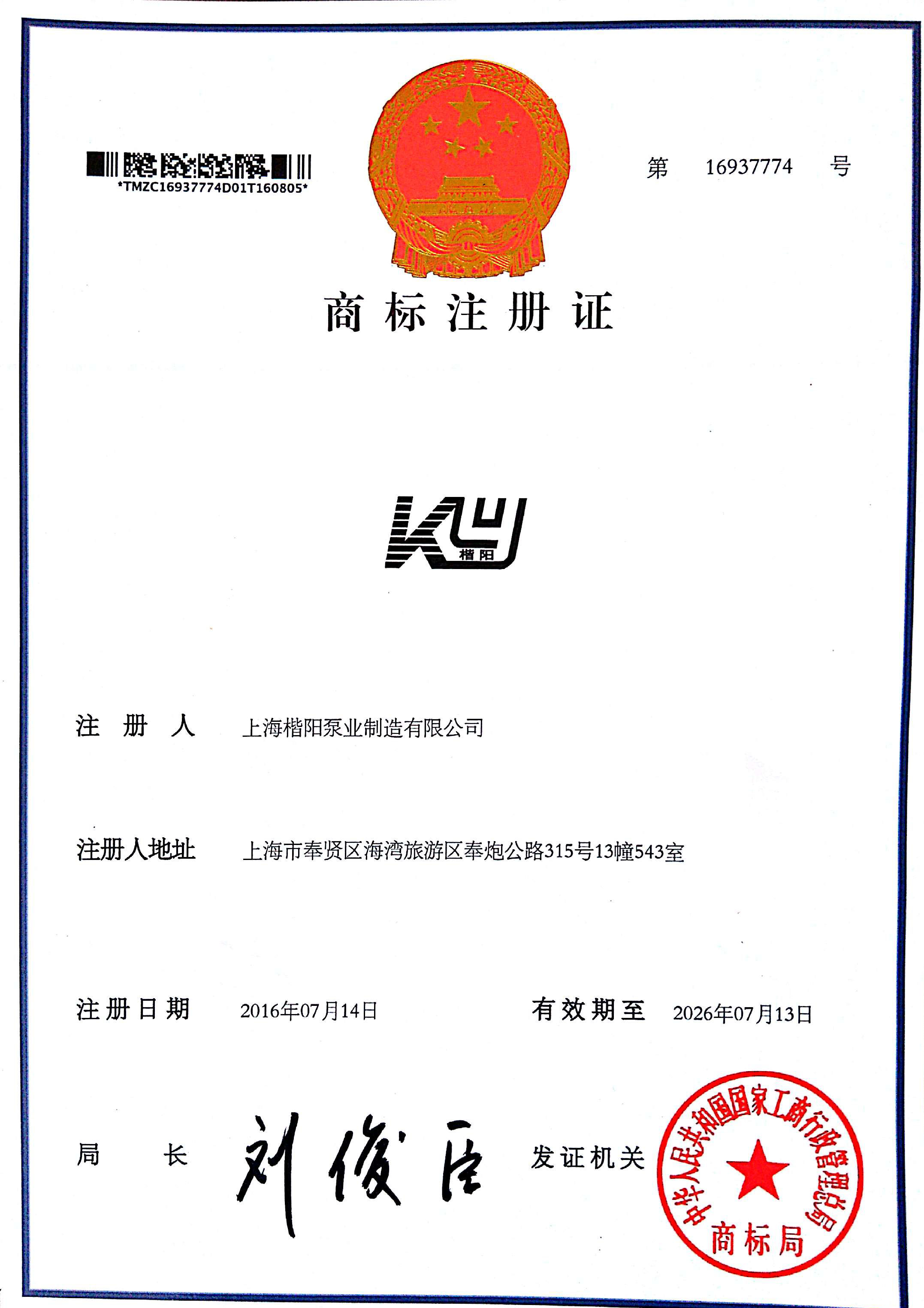 商標(biāo)證書